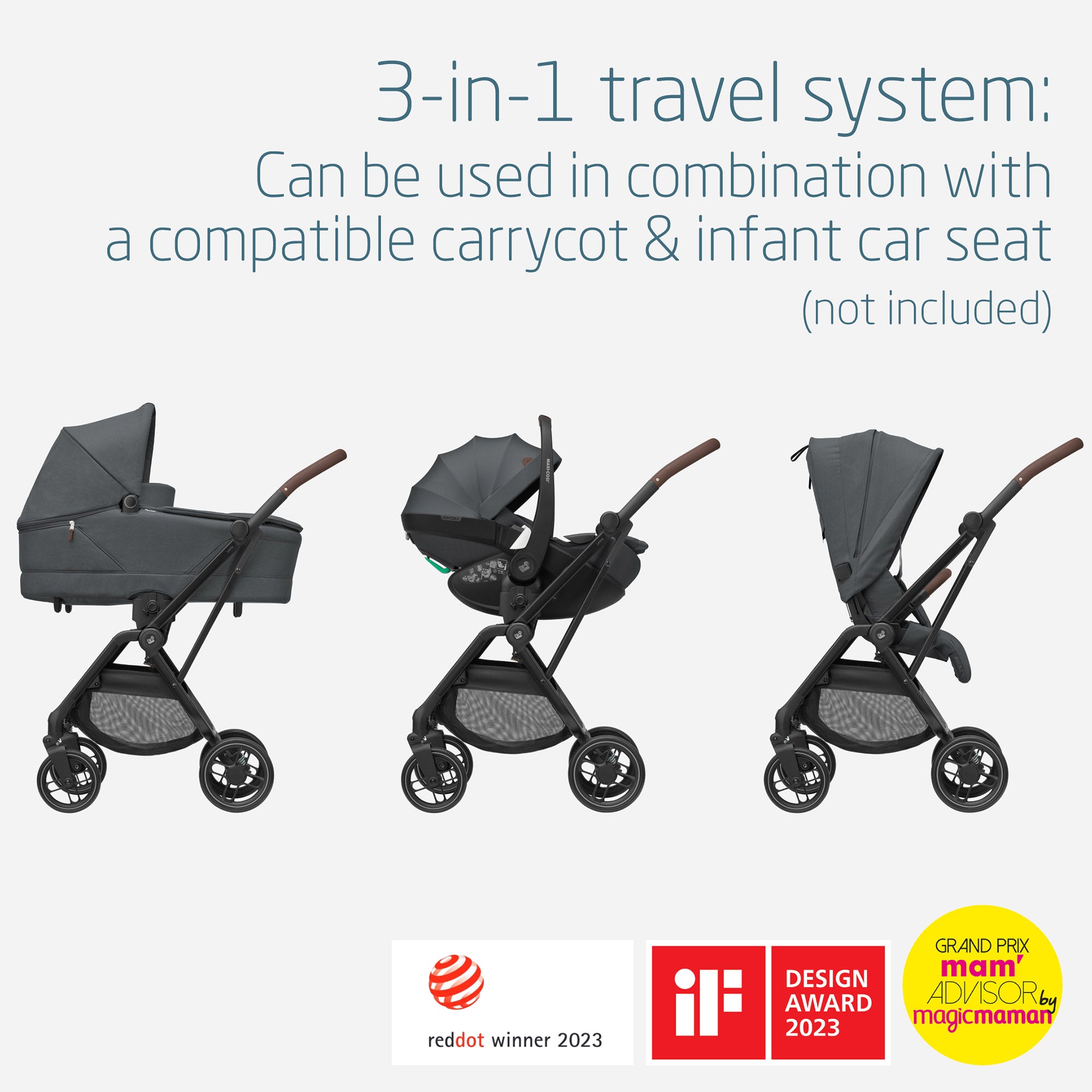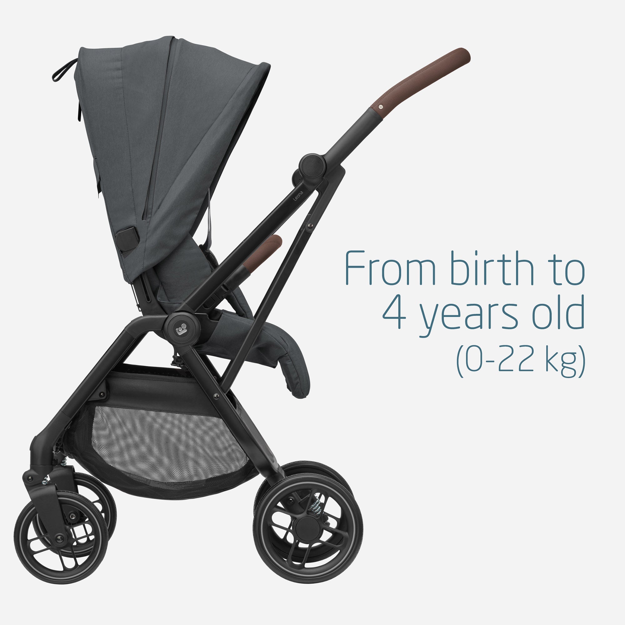 Suitable from birth up to 4 years, Leona² grows with your child. Thanks to its 3-in-1 travel system, you can easily attach a compatible carrycot or Maxi-Cosi infant car seat, allowing you to move seamlessly between walking, driving, and exploring from day one. The reversible seat fully reclines in both directions, so your baby can lie flat and face you in the early months, then switch to world-facing as their curiosity grows. A height-adjustable backrest makes it easy to adapt the seat as your child gets taller, ensuring lasting comfort at every stage.